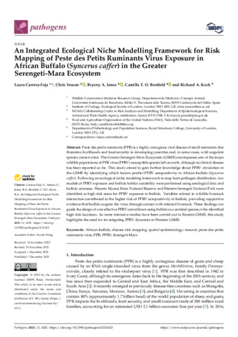 Title: | An Integrated Ecological Niche Modelling Framework for Risk Mapping of Peste des Petits Ruminants Virus Exposure in African Buffalo (Syncerus caffer) in the Greater Serengeti-Mara Ecosystem |
