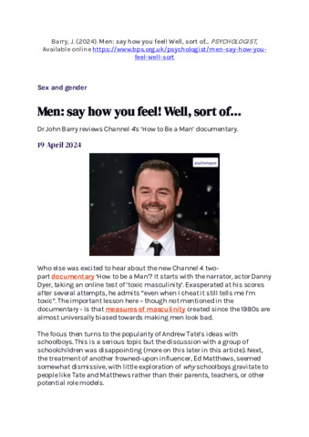 Barry 2024 Men - say how you feel - PSYCHOLOGIST.pdf - Accepted Version Download (118kB) | Preview |