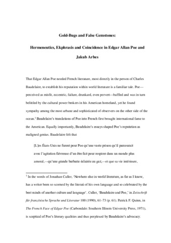 Title: | Gold-Bugs and False Gemstones: Hermeneutics, Ekphrasis, and Coincidence in Edgar Allan Poe and Jakub Arbes |