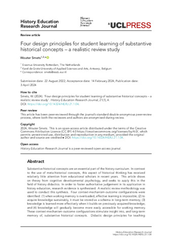 Title: | Four design principles for student learning of substantive historical concepts – a realistic review study |