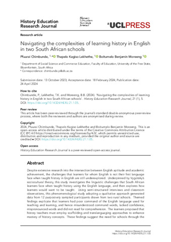 Title: | Navigating the complexities of learning history in English in two South African schools |