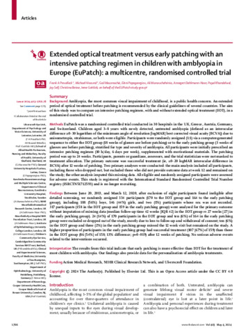 Title: | Extended optical treatment versus early patching with an intensive patching regimen in children with amblyopia in Europe (EuPatch): a multicentre, randomised controlled trial |