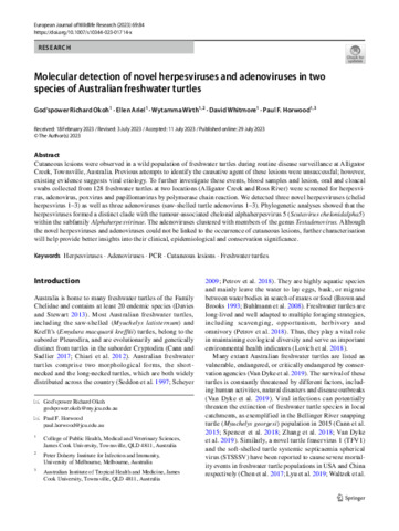 Title: | Molecular detection of novel herpesviruses and adenoviruses in two species of Australian freshwater turtles |