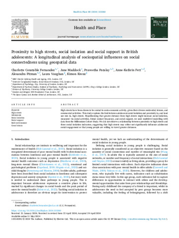 Proximity to high streets, social isolation and social support in British adolescents: A longitudinal analysis of sociospatial influences on social connectedness using geospatial data.