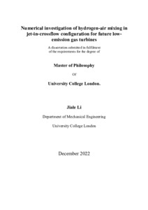 Title: | Numerical investigation of hydrogen-air mixing in jet-in-crossflow configuration for future low-emission gas turbines |