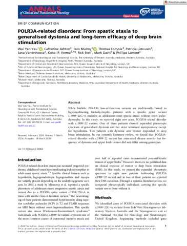 POLR3A-related disorders: From spastic ataxia to generalised dystonia and long-term efficacy of deep brain stimulation.