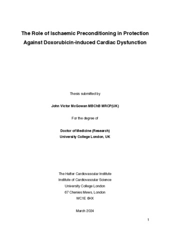 Title: | The Role of Ischaemic Preconditioning in Protection Against Doxorubicin-induced Cardiac Dysfunction |