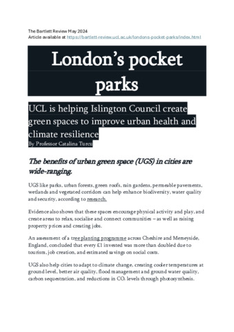 Title: | London’s pocket parks: UCL is helping Islington Council create green spaces to improve urban health and climate resilience |