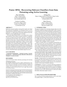 Title: | Poster: RPAL-Recovering Malware Classifiers from Data Poisoning using Active Learning |