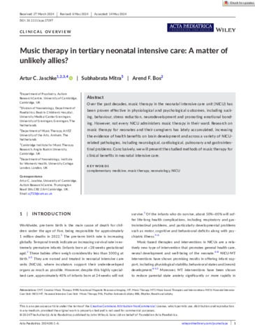Acta Paediatrica - 2024 - Jaschke - Music therapy in tertiary neonatal intensive care A matter of unlikely allies.pdf - Published Version Download (489kB) | Preview |