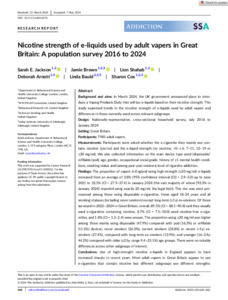 Title: | Nicotine strength of e-liquids used by adult vapers in Great Britain: a population survey 2016 to 2024 |