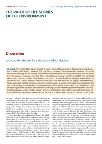 The value of life stories of the environment. Discussion.