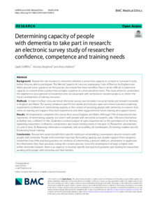 Title: | Determining capacity of people with dementia to take part in research: an electronic survey study of researcher confidence, competence and training needs |
