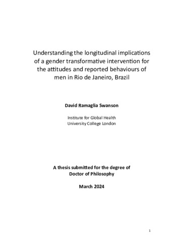 Title: | Understanding the longitudinal implications of a gender transformative intervention for the attitudes and reported behaviours of men in Rio de Janeiro, Brazil |