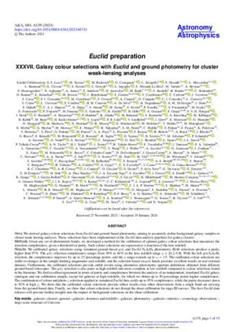 | Title: | Euclid preparation: XXXVII. Galaxy colour selections with Euclid and ground photometry for cluster weak-lensing analyses |