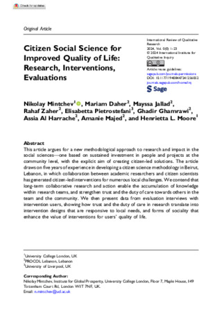 Mintchev, Daher, Jallad et al - Citizen Social Science for Improved Quality of Life.pdf - Published Version Download (1MB) | Preview |