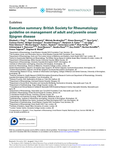 Title: | Executive summary: British Society for Rheumatology guideline on management of adult and juvenile onset Sjögren disease |