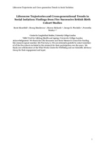 Lifecourse trajectories and cross-generational trends in social isolation: Findings from five successive British birth cohort studies.