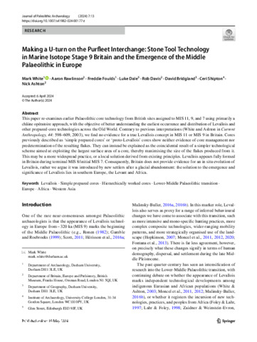 Title: | Making a U-turn on the Purfleet Interchange: Stone Tool Technology in Marine Isotope Stage 9 Britain and the Emergence of the Middle Palaeolithic in Europe |