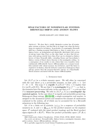 Title: | Sinai factors of nonsingular systems: Bernoulli shifts and Anosov flows |