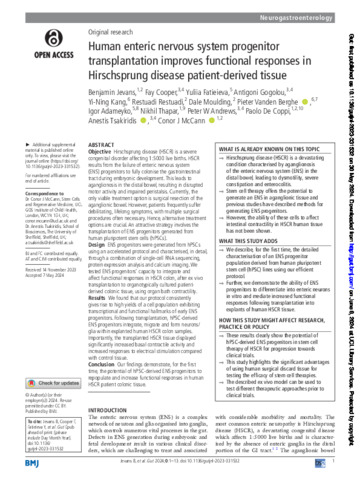 | Title: | Human enteric nervous system progenitor transplantation improves functional responses in Hirschsprung disease patient-derived tissue |