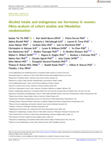Title: | Alcohol intake and endogenous sex hormones in women: Meta‐analysis of cohort studies and Mendelian randomization |