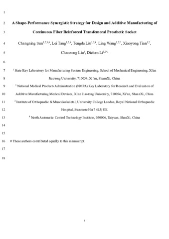 A shape-performance synergistic strategy for design and additive manufacturing of continuous fiber reinforced transfemoral prosthetic socket.