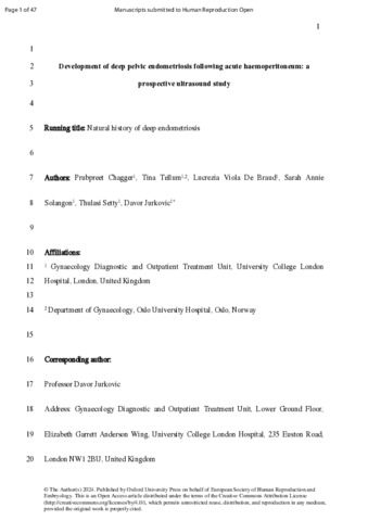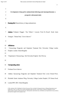 | Title: | Development of deep pelvic endometriosis following acute haemoperitoneum: a prospective ultrasound study |