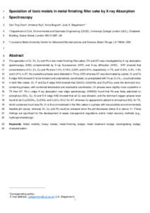 | Title: | Speciation of toxic metals in metal finishing filter cake by X-ray absorption spectroscopy |