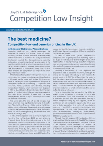 Title: | The best medicine? Competition law and generics pricing in the UK |