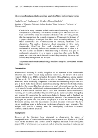 Title: | Discourses of mathematical reasoning: analysis of three reform frameworks |