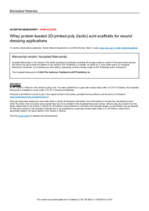 | Title: | Whey protein-loaded 3D-printed poly (lactic) acid scaffolds for wound dressing applications |