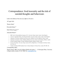 Correspondence: Food insecurity and the risk of suicidal thoughts and behaviours.