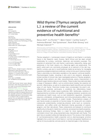 | Title: | Wild thyme (Thymus serpyllum L.): a review of the current evidence of nutritional and preventive health benefits* |