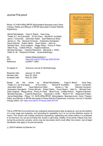 | Title: | Phase 1/2 AAV5-hRKp.RPGR (Botaretigene Sparoparvovec) Gene Therapy: Safety and Efficacy in RPGR-associated X-linked Retinitis Pigmentosa |