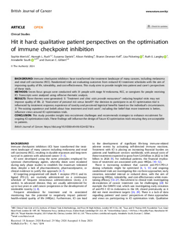 | Title: | Hit it hard: qualitative patient perspectives on the optimisation of immune checkpoint inhibition |