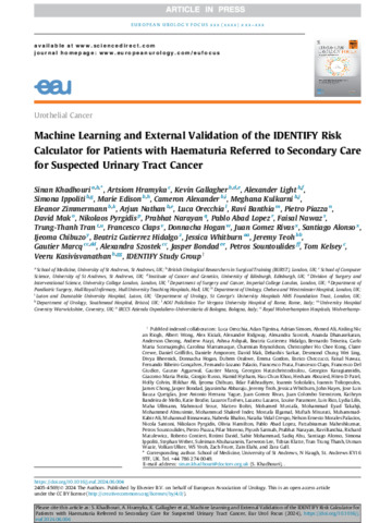 Machine Learning and External Validation of the IDENTIFY Risk Calculator for Patients with Haematuria Referred to Secondary Care for Suspected Urinary Tract Cancer.