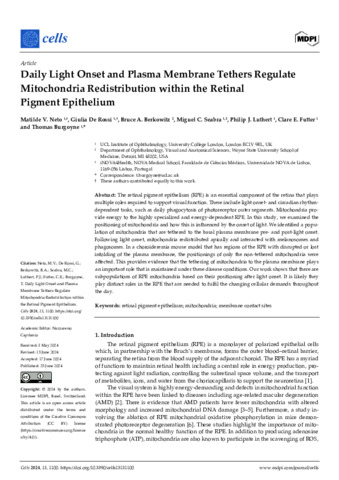 Title: | Daily Light Onset and Plasma Membrane Tethers Regulate Mitochondria Redistribution within the Retinal Pigment Epithelium |