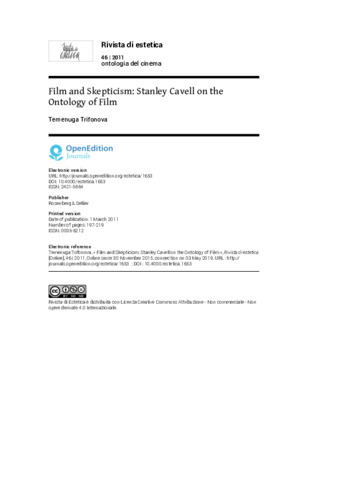 Film and Skepticism: Stanley Cavell on the Ontology of Film.