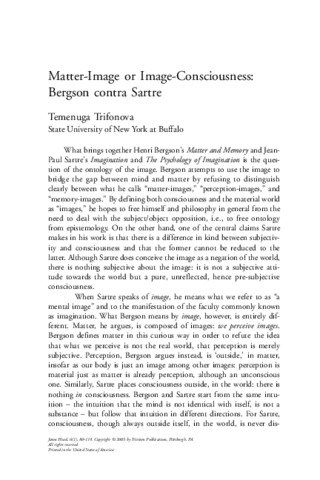 Title: | Matter-Image or Image-Consciousness: Bergson contra Sartre |