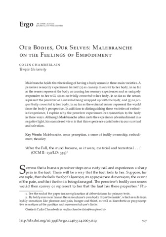 Title: | Our Bodies, Our Selves: Malebranche on the Feelings of Embodiment |