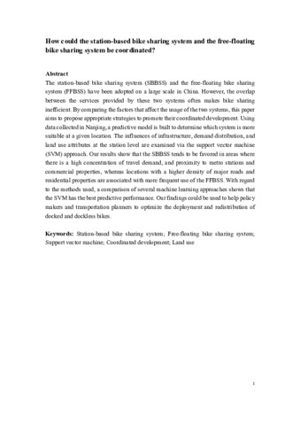 Title: | How could the station-based bike sharing system and the free-floating bike sharing system be coordinated? |