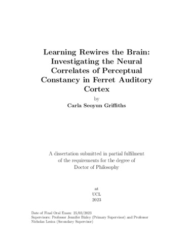 Title: | Learning Rewires the Brain: Investigating the Neural Correlates of Perceptual Constancy in Ferret Auditory Cortex |
