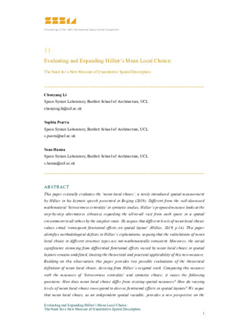 Event: | The 14th International Space Syntax Symposium (SSS14) |
