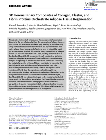 Macromolecular Bioscience - 2024 - Sawadkar - 3D Porous Binary Composites of Collagen Elastin and Fibrin Proteins-1.pdf - Published Version Download (5MB) | Preview |