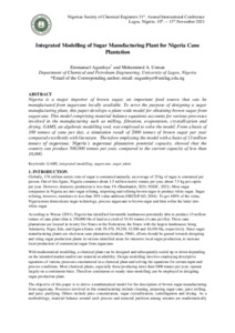 Title: | Integrated Modelling of Sugar Manufacturing Plant for Nigeria Cane Plantation |