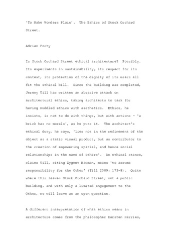 | Title: | 'To make wonders plain': the ethics of Stock Orchard Street |