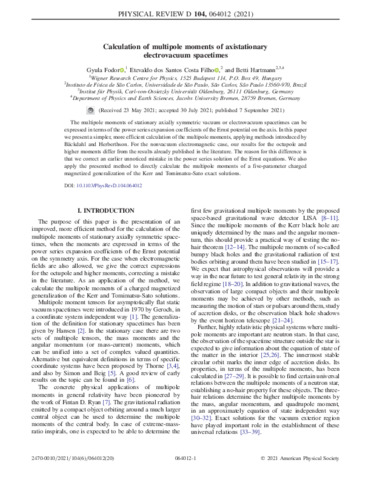 Title: | Calculation of multipole moments of axistationary electrovacuum spacetimes |
