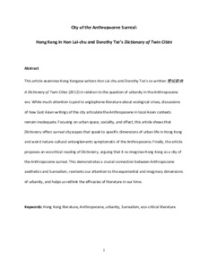 | Title: | City of the Anthropocene Surreal: Hong Kong in Hon Lai-chu and Dorothy Tse's A Dictionary of Twin Cities |