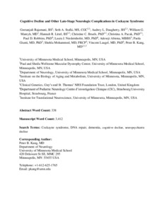 Cognitive Decline and Other Late-Stage Neurologic Complications in Cockayne Syndrome.